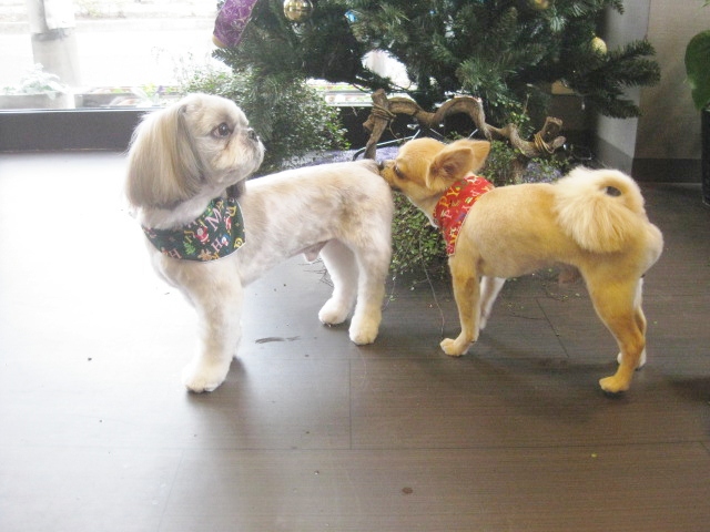 お家は別々のこたろうクン(シーズー)と、こじろうくん(チワワ)ですが、ママ同士がとっても仲良しさんでいつも、2頭一緒にご来店いただいています!(^^)!