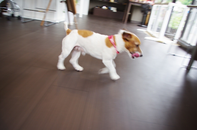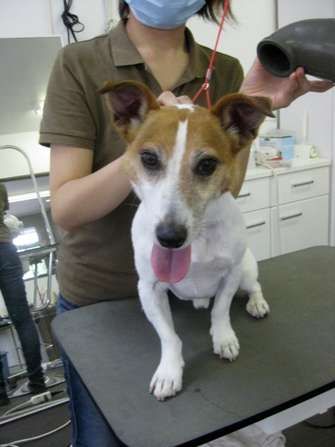 元気いっぱいのジャックラッセルらしく、ブロー中もやる気満々・興味津々(p_-)!