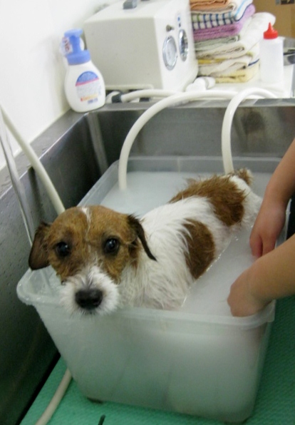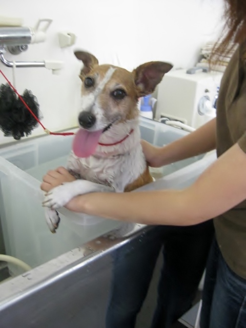 ちょっと緊張気味のジャックくんでしたが、ご機嫌にご入浴♨