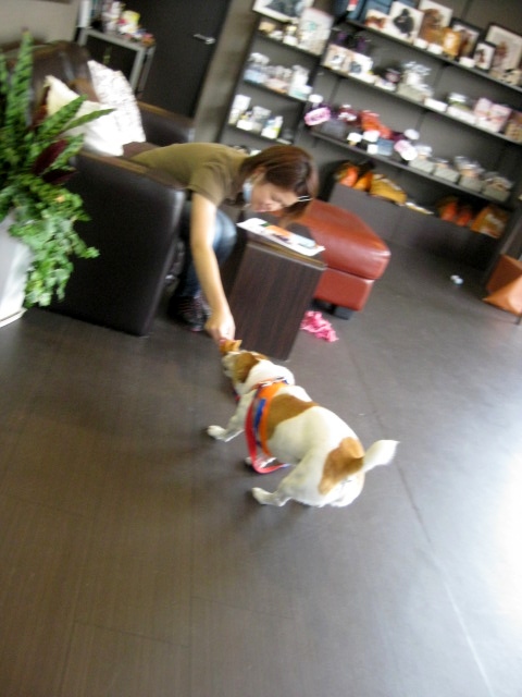 トリミングが終わって、私が事務処理をしている間、床に伏せをしてガラスの外を眺めては、数分おきに私の所に物言いたげに・・・来るのです。抱っこする?と、声をかけると後ずさり。。。