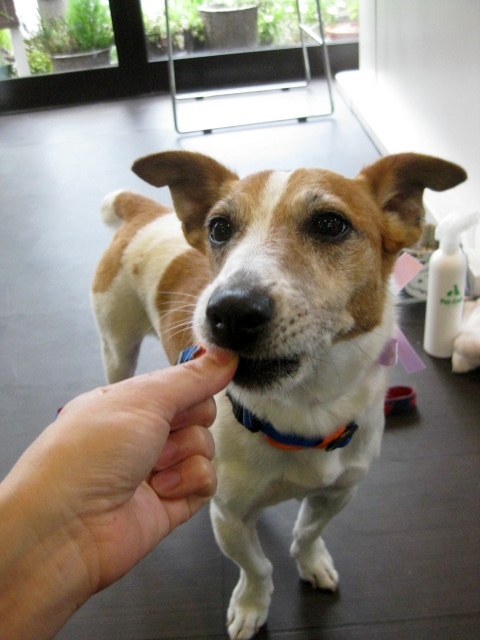 ご褒美のオヤツタイムは、意外と(笑)お上品なジャックさん。。。