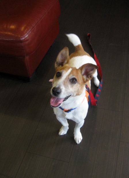 お迎えが来たら、ジャックラッセルらしいジャンプ力で大はしゃぎをして、いつもの元気な二コルに戻っていました(笑)