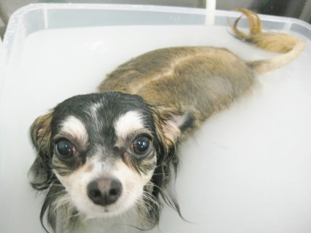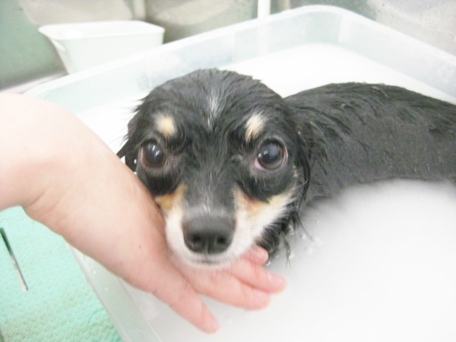 マイクロバブル中は、ちょっとビビりん坊だったので、最初はかけ湯で、徐々にお湯につかってもらいました。ちゃんと我慢してくれていました(#^.^#)