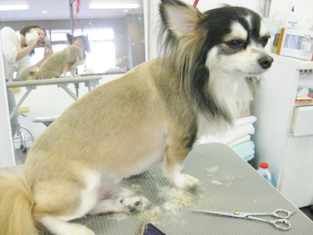 わんちゃんと向き合う時、突然咬みつかれるかもしれない恐怖心や、細い骨格のわんちゃんや動きの激しいわんちゃんを怪我をさせないように扱うことのむずかしさ、シニア犬や持病を持ったわんちゃんに負担をかけないか。。。突然動いたときに、瞬発的にハサミを放せるか。トリミングを行っている間、常に自問自答を繰り返しています。