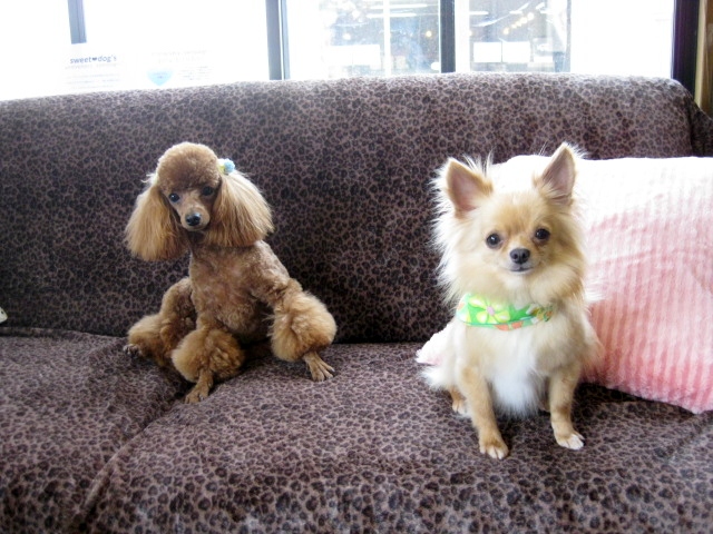 テディくんはとっても男らしいお顔で、ララちゃんはホントに女の子らしい、対照的なチワワズですが、仲良しさんで、ずっとくっついて一緒に居ました♪