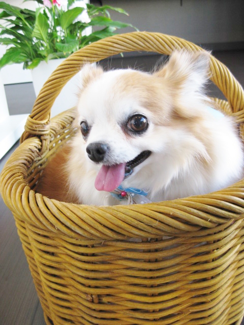 お迎えが来るまで、ずっと籠の中から周りを観察していました★