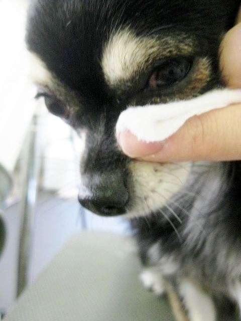 また、目の周りは、傷つけてしまわないように、ブラシではなく、コットンやコームを利用して、弱い冷風で乾かすようにしています(p_-)