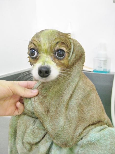 トリミング慣れしているので、お風呂もブローもまったりしてます。。。