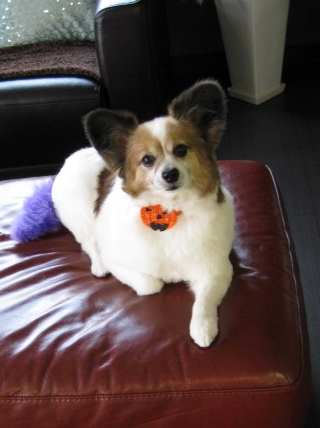 チョコのシッポは根元がブラウン、先が真っ白の毛色なので、パープルにカラーリングをしたら、ブラウンとパープルの相性が良くて、とっても似合っていました☆
