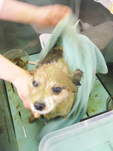 身体はスッキリ全身カットをして、しっぽはグリ~ングリ~ンにカラーリングをさせて頂きました(*^_^*)