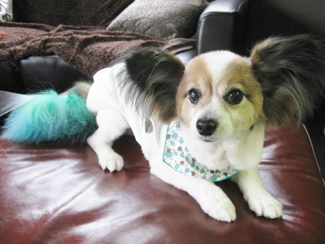 今回、バンダナもしっぽに合わせてグリーンのお花柄です✿