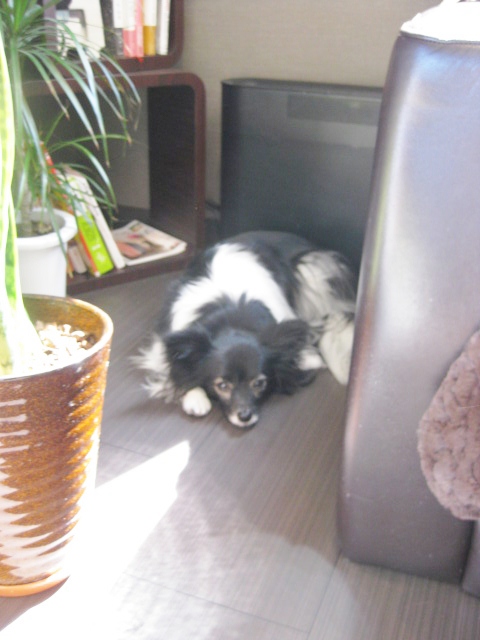 いつもはソファーの一番いいところを陣取っているくせにぃ~。