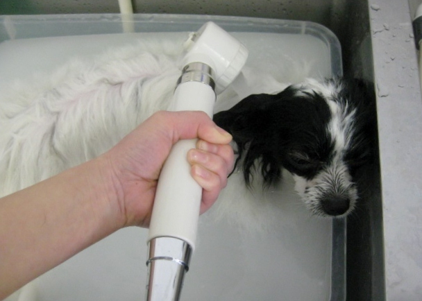 いつも、お顔のシャワーはちょっぴり苦手なのに、なぜかマイクロバブルだと、お顔に当ててもまんざらでもない様子でいてくれるのです(ー_ー)!!