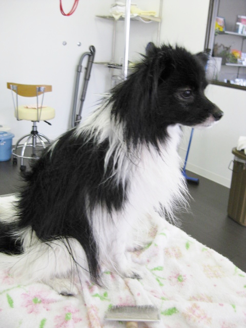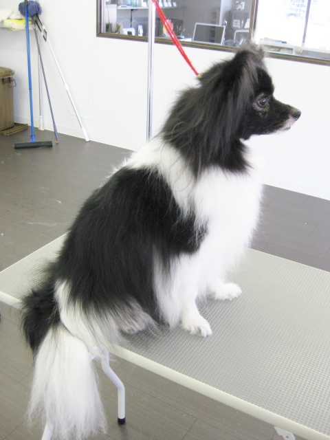 お耳としっぽ・フロント(胸)の豊かな飾り毛を残し、パピヨンらしく仕上げました!(^^)!