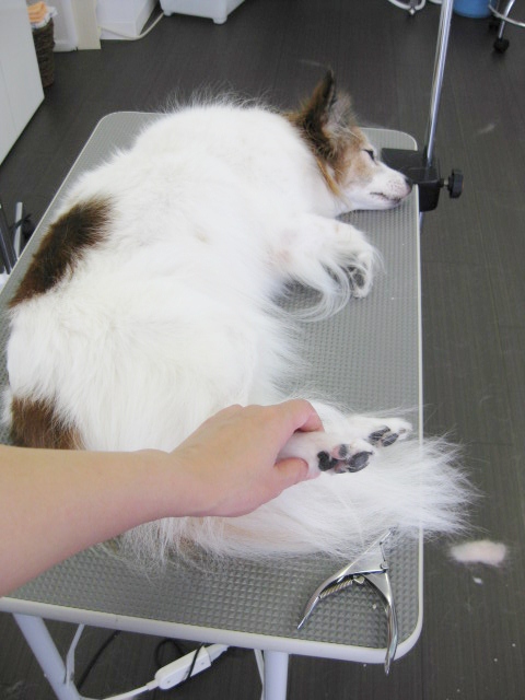 トリミングにも、とっても慣れていて、「ここはこの姿勢が楽なのよ。」