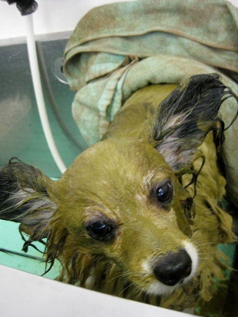 いつも、お顔のシャワーはちょっぴり苦手なのに、なぜかマイクロバブルだと、お顔に当ててもまんざらでもない様子でいてくれるのです(ー_ー)!!