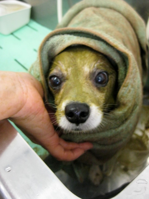 トリミングの後は、めずらしく(p_-)