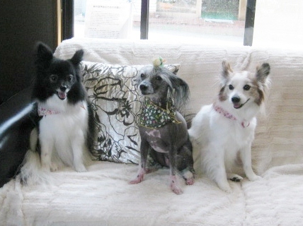 オーナー様がお迎えに来て、「みんなお写真撮るよ~」と言ってソファーを指差しただけで、みんな、よっこいしょっとソファーへ集合!!