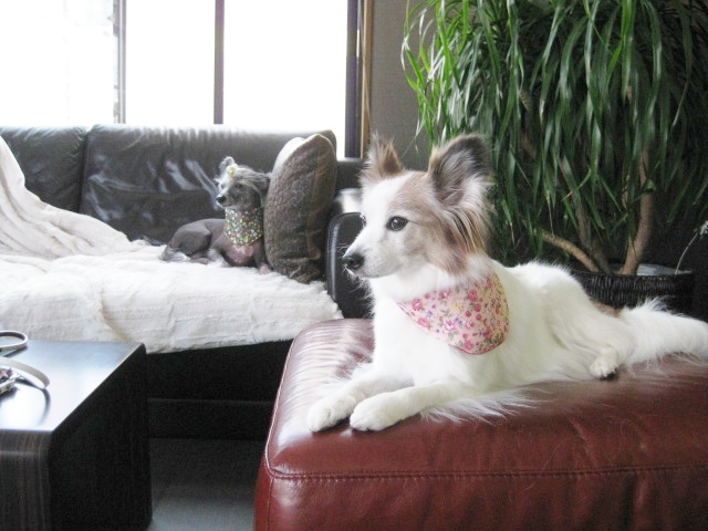 今回、バンダナもしっぽに合わせてグリーンのお花柄です✿