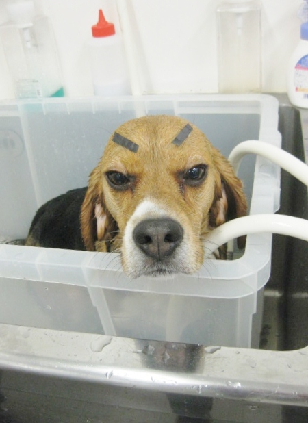 てん君はいつものようにボ~っとしているだけなのに、「マイクロバブルやなんだよ~う(泣)」な顔も「こんなところに入れやがって~(怒)」な顔も、変幻自在な優れもの★