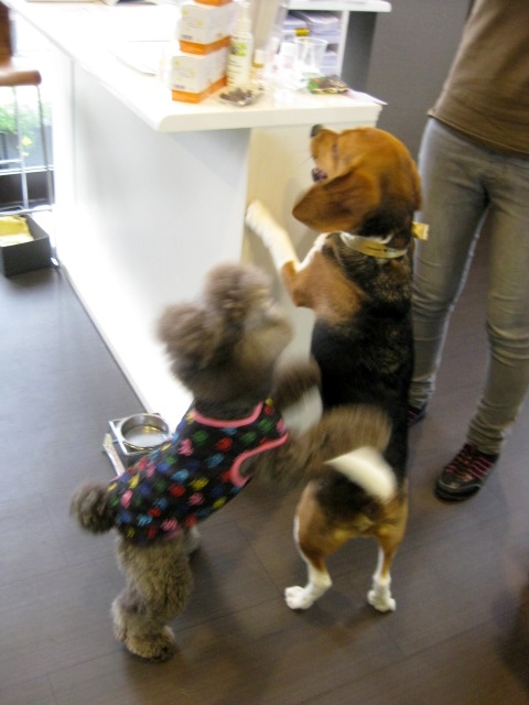 この日は、シャンプーセット&一時預かりだったので、シャンプーの前に、ダイアさんの子守りをお願いいたしました(^_-)