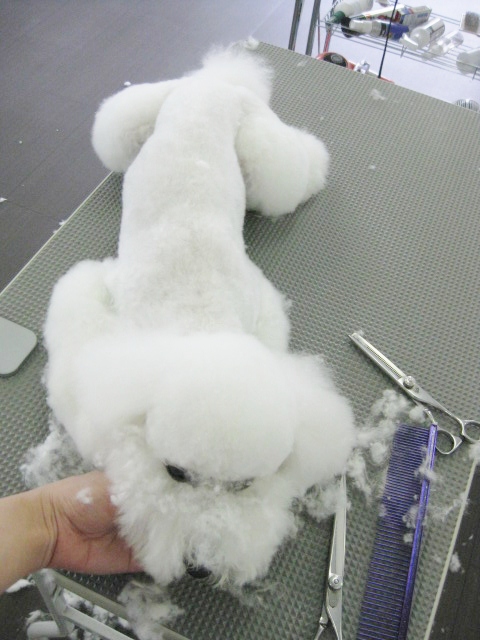 まだ甘えたい盛りのパピーのトリミングは、怪我をさせないために気を抜くことができません。