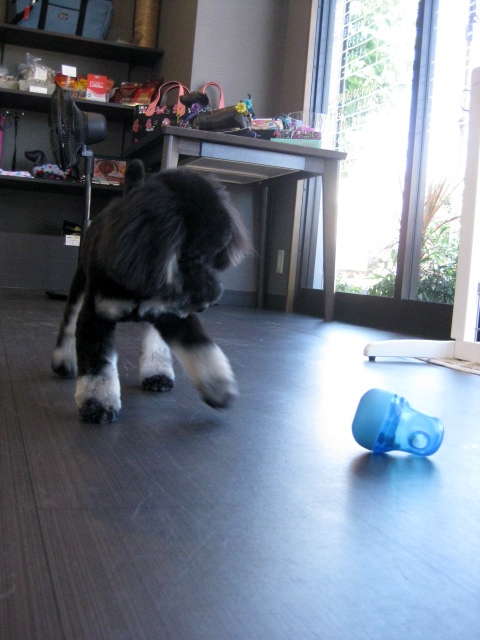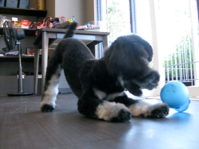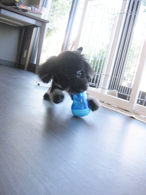 トリミングの後、前回はスリッパを相手にエキサイティングしていましたが、今回はおもちゃをご用意させていただきました~!(^^)!