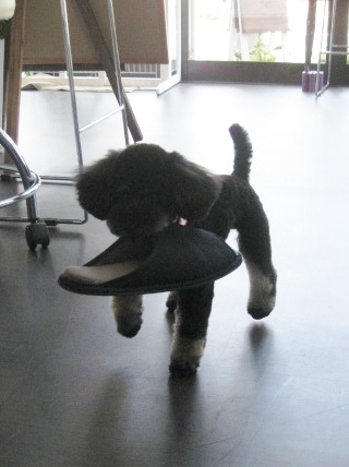私から見れば、スリッパを破壊する、おちゃめなわんこなのですが。