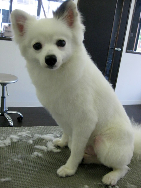 真っ白い!!きれいすぎて、カット中、目がチカチカするくらい真っ白ワンコです☀