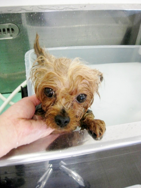 一人ぼっちは苦手なようで、ず~っと人のそばに居たがって呼び鳴きをしていたので、他のわんちゃんのトリミングが終わってからは、ず~っと抱っこ❤