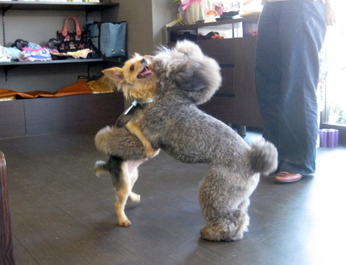 みっちゃんのお尻を嗅ぎに行くと、怒られて逃げ腰のダイア。