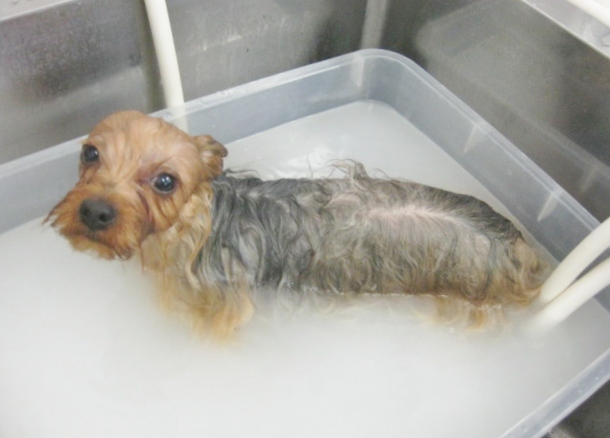 マイクロバブル中はちょっぴり緊張して、踏ん張っていましたが(笑)、お利口ちゃんに洗浄させてくれました!