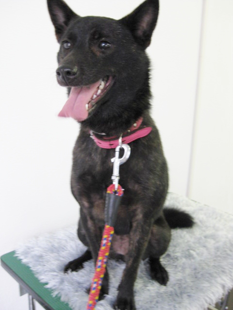 この写真ではわかりにくいですが、甲斐犬の特徴は、とってもきれいなレッドとブラックのブリンドル(トラ柄)カラーなんです。