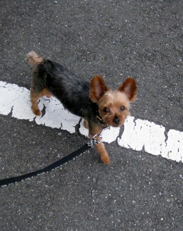 お店で過ごしているときは、お客様が見えるたびに上手に挨拶をして、愛嬌を振りまいているのに、大好きなはずのお散歩では、様子を伺っていました。