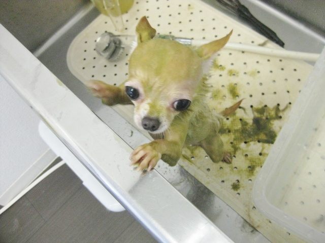 ムックくんの皮膚が弱いのが心配ということで、ハサミで前回より少しスッキリとカットさせていただきました