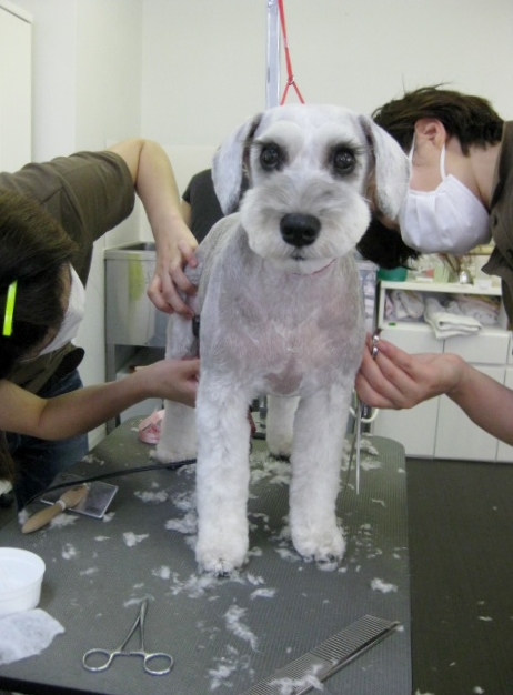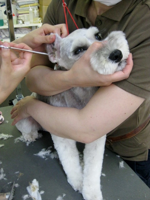 特にシュナウザーは、びっちり生えるわんちゃんが多いので、耳のケアは、ガマンしてもらわなくてはなりません(/_;)
