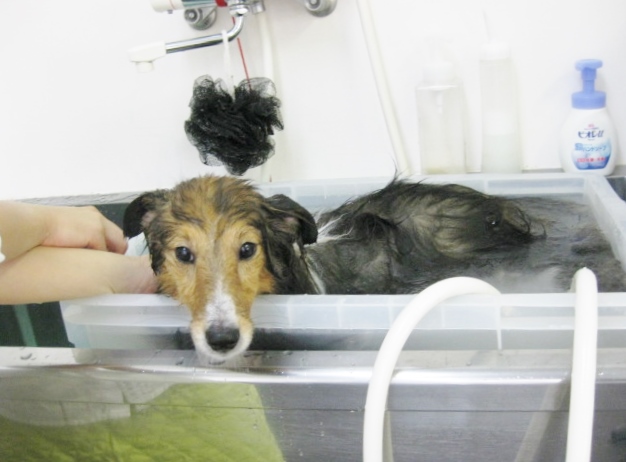 初めてだから、嫌がるかな??と、思っていたのですが、とっても気持ちよさそうに、終始おっとりと浸かっていてくれました~!(^^)!