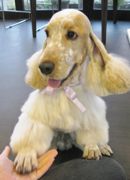 トリミングの後は、お手やオスワリの号令に、ニコニコしながら答えてくれて❤
