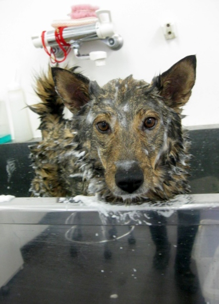 お利口ちゃんにシャンプーとマイクロバブルのお風呂にはいってくれました(*^_^*)