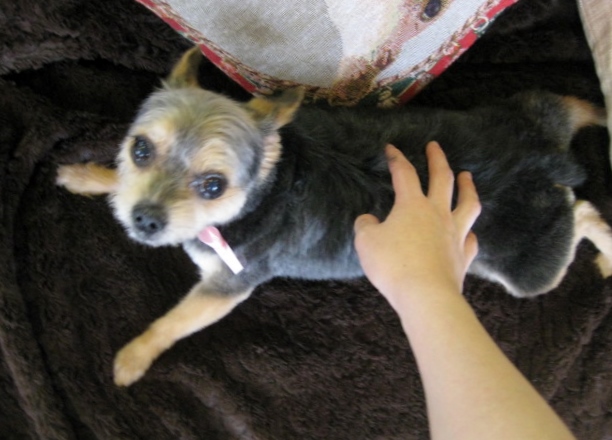 トリミングの後、なでなでされたら、びよよーんと体を伸ばして、まんざらでもない様子(p_-)❤