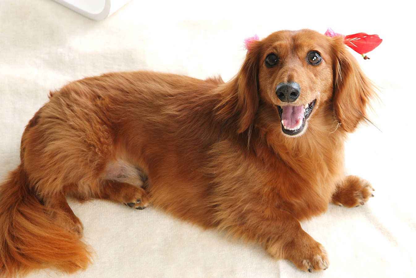青い羽根の付いたダックスは二男のビー君、