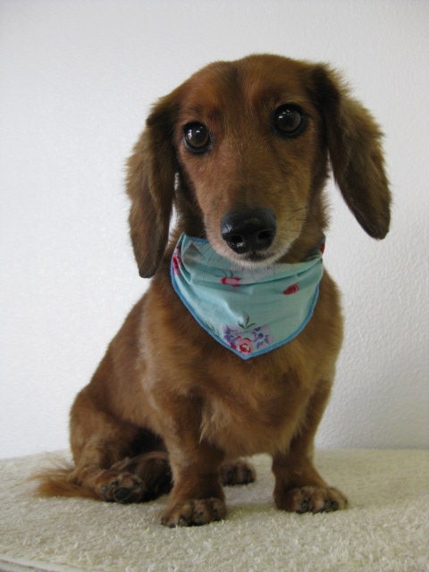 赤い羽根の付いたダックスはうちの長男のシガー君、